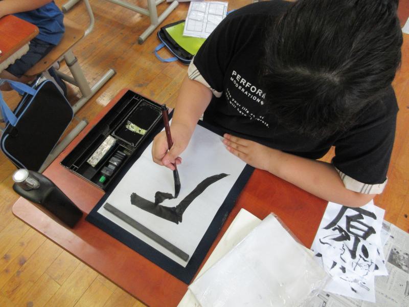 3年生は「日」、4年生は「原」を書きました。「先生見てください。」「先生どうですか。」と、子ども達は、意欲的に取り組んでいました。