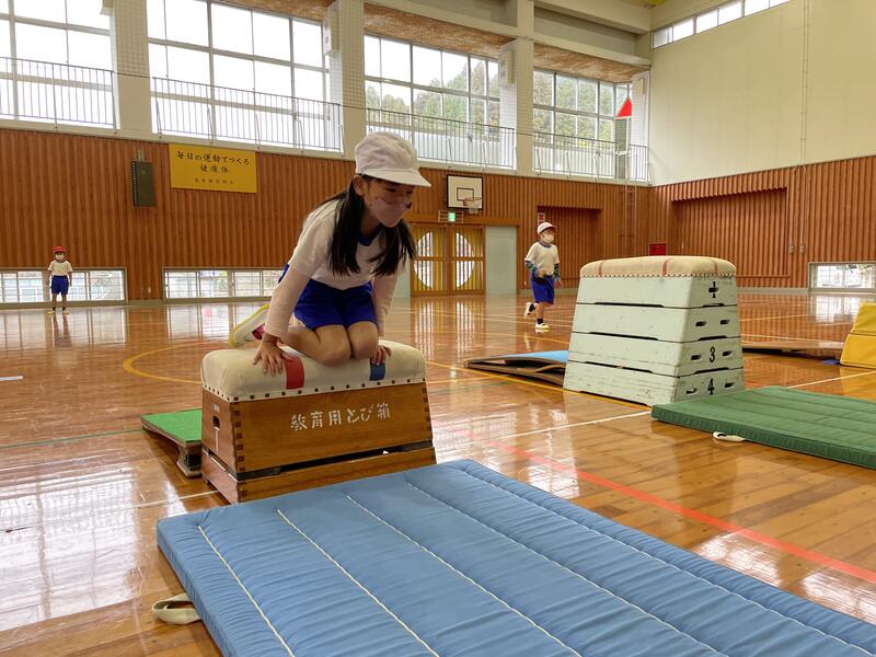 体育館は寒かったですが、1年生が跳び箱の練習を一生懸命がんばっていました。