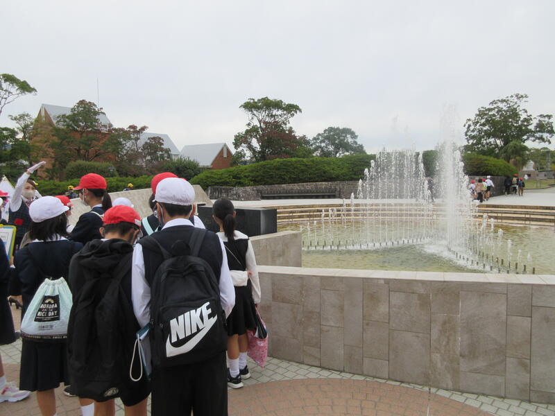 1日目は、長崎市内の様々な場所を巡り、平和学習を行いました。平和公園、山里小学校、如己堂、浦上天主堂、原爆投下中心地、原爆資料館など多くの場所を巡りながら原子爆弾のおそろしさや、平和の大切さについて学びました。
