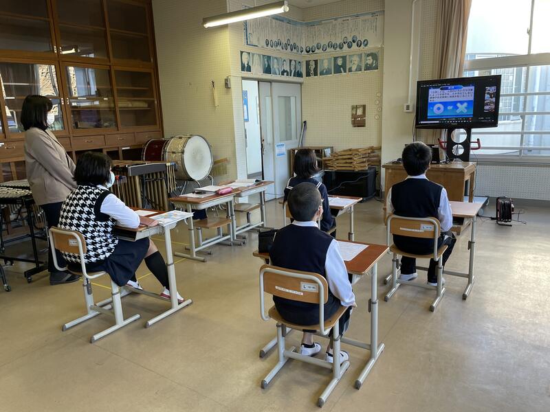 午前中の4時間、本校を含む県内3つの小学校と熊本県環境センター、水俣病資料館がオンラインで結ばれ、同時に学習が進められました。