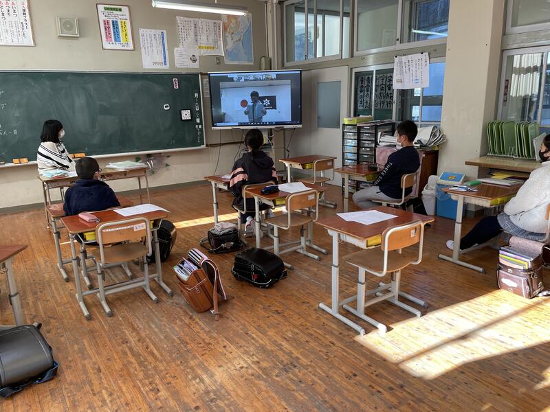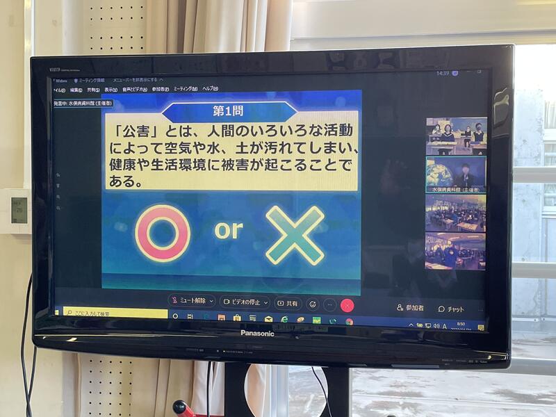 午前中の4時間、本校を含む県内3つの小学校と熊本県環境センター、水俣病資料館がオンラインで結ばれ、同時に学習が進められました。
