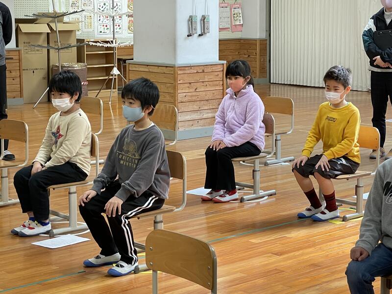 1年生は、図工の「紙をつかって」の学習で、色画用紙に穴をあけて、お面作りをしました。