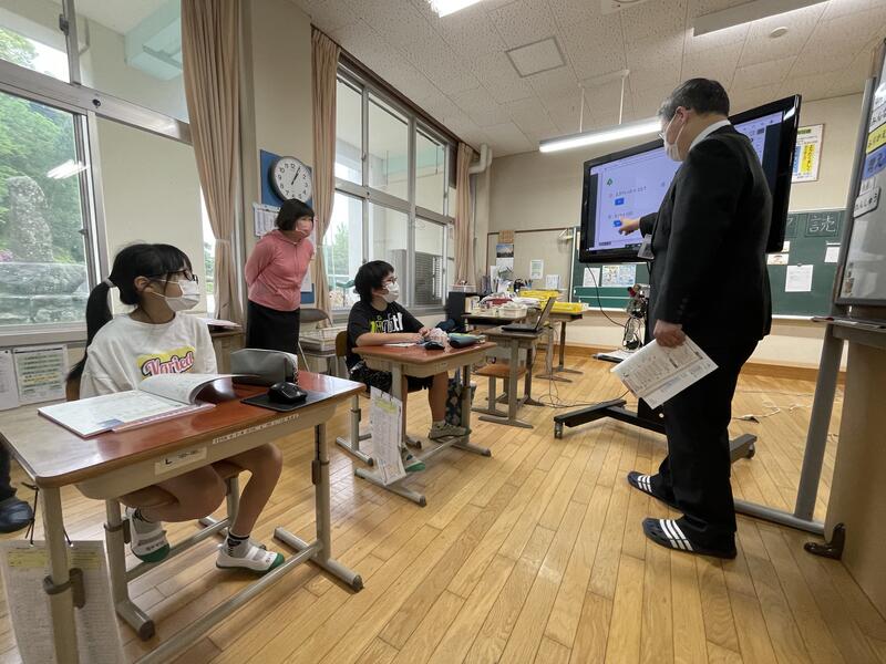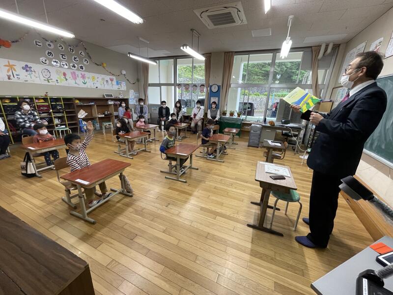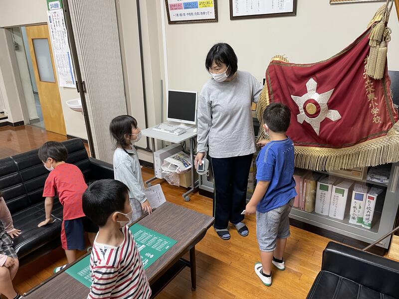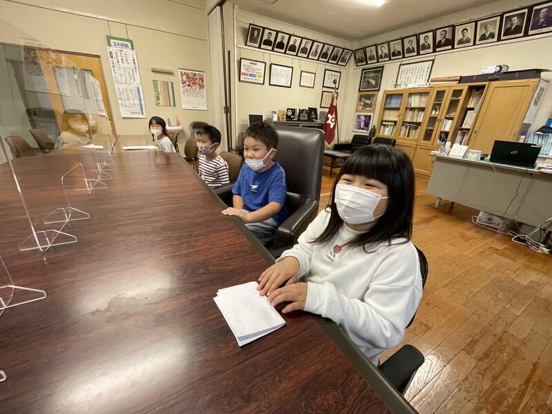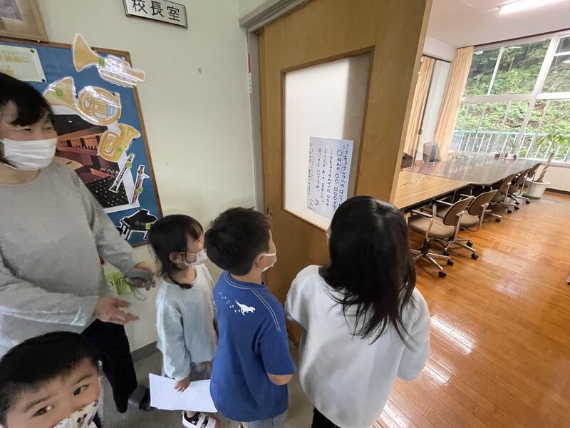 21にちに いちねんせいと にねんせいの みんなが がっこうたんけんで こうちょうしつに きてくれました。