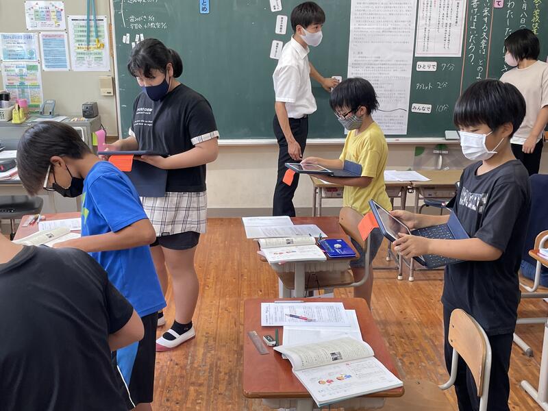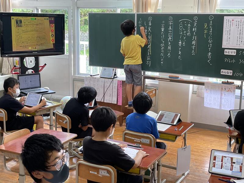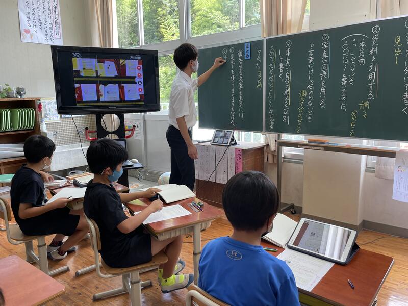 6年生は、「学校を改革するために提案する文章は、どのような構成で書けばよいか。」について学習リーダーを中心に、ICTも活用しながら学習しました。