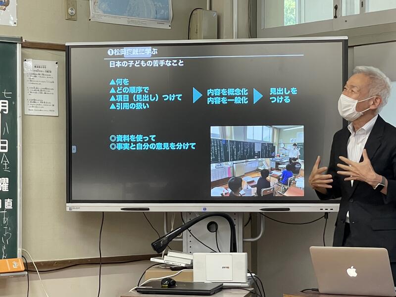 8日(金)5,6年教室で昨年度に引き続き、真和高等学校の戸田俊文先生を講師としてお招きし、国語の研究授業が行われました。