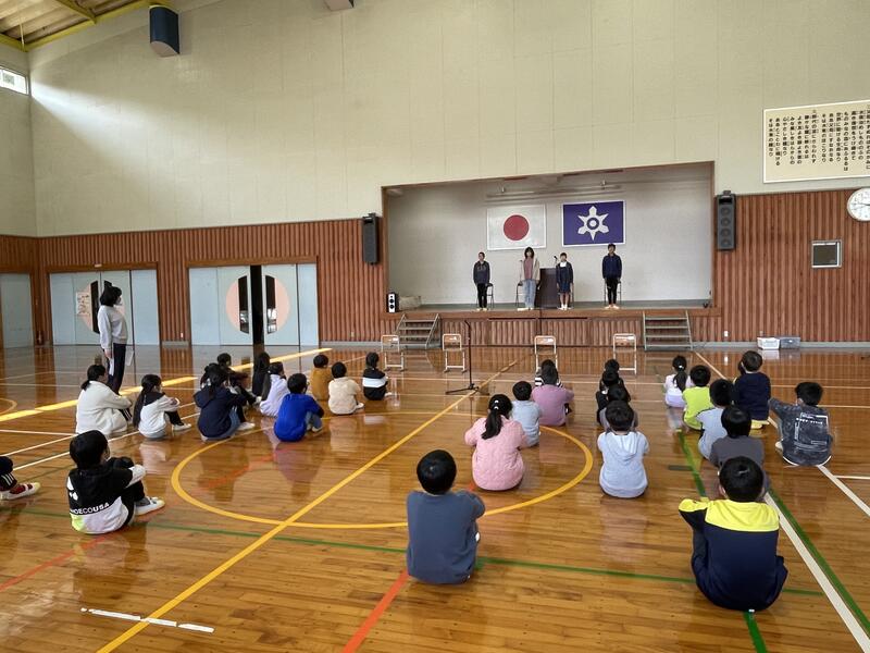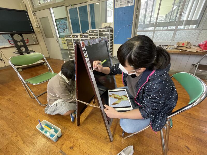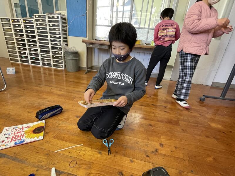 昨日、5年生は家庭科で作ったエプロンを見せに来てくれました。3年生は図工の作品を見せてくれました。