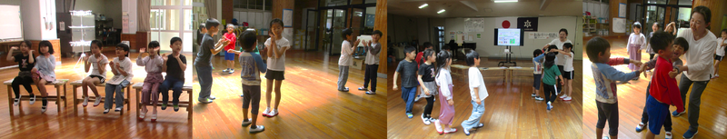 4月20日(月)の4時間目に、1・2年生の音楽がありました。歌ったり、踊ったり、リズム遊びをしたりととっても楽しそうに活動していました。2年生が1年生に優しく声を掛けながら教えている姿が見られました。