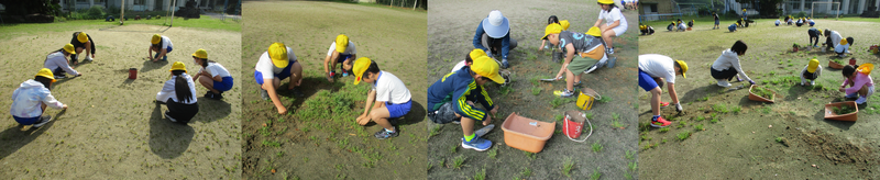 4月21日(火)の朝はSDGsタイムでした。今日は、久しぶりに天気もよく運動場の草取りをしました。雨が続いたり、いいタイミングで晴れ間もあったりと雑草は元気に育って運動場が大変なことになっていました。短い間ではありましたが、子供達は精一杯草取りを頑張ってくれて、ずいぶんきれいになりました。