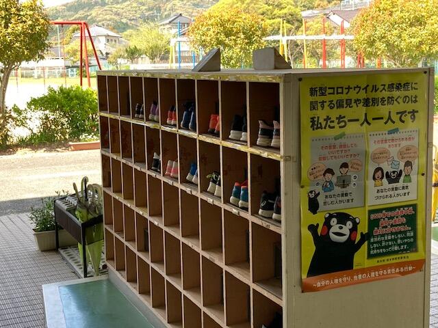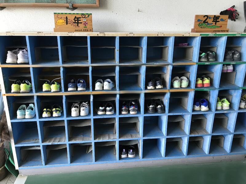 初日全員出席 靴箱はかかとがピシャッと並んで素晴らしい。これは六年生。さすが!