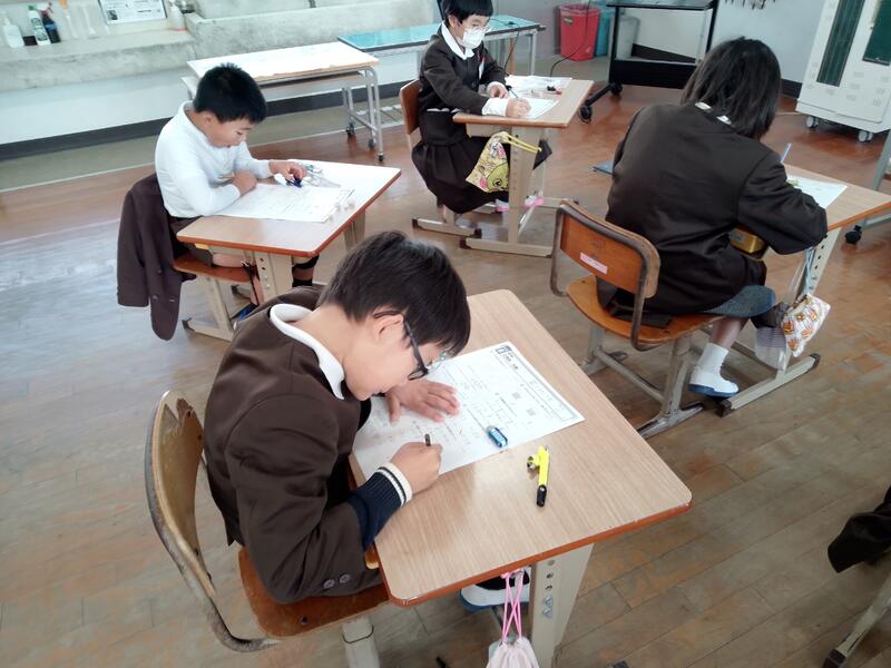 担任の先生が出張で不在でしたが、誰一人おしゃべりをすることなく、算数の問題に黙々と取り組んでいます。自分たちで考え、自律して学習を進める姿に、中学年としての頼もしさを強く感じました。
