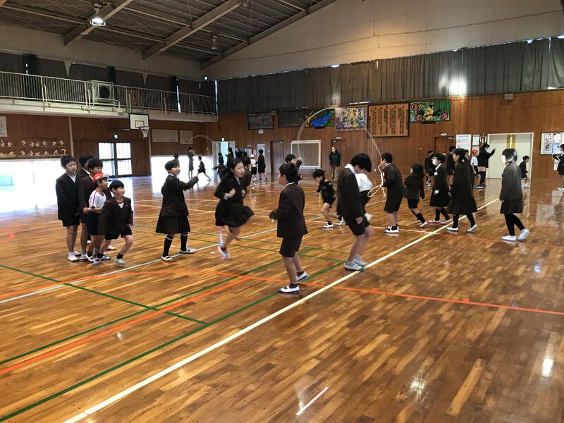 今日は朝から寒い1日となりました。そんな寒い中、「朝タイム」は、異学年で構成される「きょうだい班」による長縄跳びを行いました。子供たちはこれまで、11月頃より練習を積み重ねてきました。「もっと前へ詰めて!」「今だよ、はい!」という上級生の頼もしいリード。それに応えようと、真剣な表情で縄にとび込む下級生。練習を始めた頃に比べると、縄を回すスピードは格段に速くなり、流れるようなリズムで次々と跳んでいく姿には、目を見張るほどの成長を感じました。見事、216回という素晴らしい最高記録を打ち立てた班(2班)もあり、体育館は大いに盛り上がりました!新記録が出た瞬間の、子供たちの弾けるような笑顔とハイタッチは、見ている私までうれしくなる光景でした。
