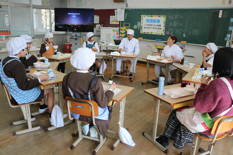 昨日、1月29日(金)、本校では「招待給食」を行いました。今回は、天草市教育委員会の池崎教育委員様、そしていつも美味しい給食を作ってくださる給食センターの調理員の皆様を各教室にお招きしました。配膳が終わると、あちらこちらの教室から「いつもありがとうございます!」という元気な声や、少し照れくさそうな「いただきます」の声が聞こえてきました。食事中の会話も、招待給食ならではの醍醐味です。「一番好きな食べ物は何ですか?」「給食を作るのは大変ですか?」そんな素朴な質問に優しく答えていただきながら、子供たちの顔には自然と笑みがこぼれます。普段は会ったり、お話したりなかなかできませんが、支えてくださっている方々と机を並べて食事をすることで、子供たちは「食」の背景にある人の温かさを、肌で感じてくれたようです。