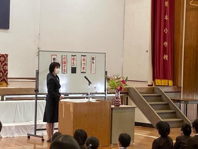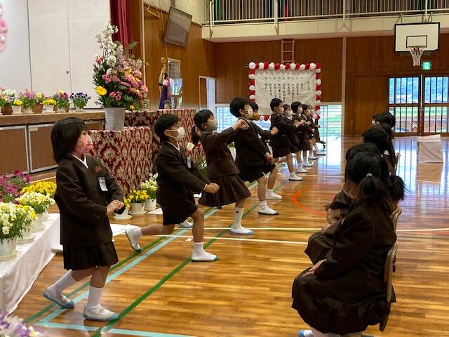 13名のかわいい1年生の入学です。全校児童で1年生の入学をお祝いすることができました。2年生は代表でお迎えの言葉と歌のプレゼントもしてくれました。小学校生活がいよいよスタートです!