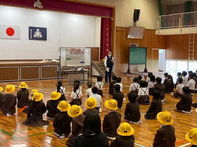 今日は天草警察署の方と交通安全協会の方を講師に招き、全校児童で交通安全教室に参加しました。協会の方からは、実際に起きた事故の場面を図を示しながら説明していただきました。子供たちはとても真剣に身近な交通安全について考えることができました。