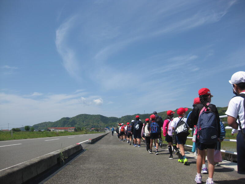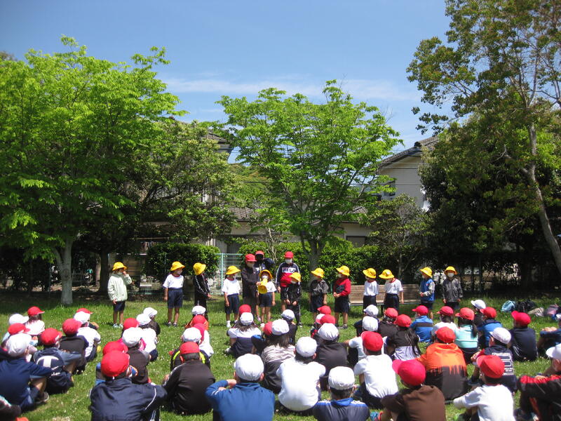 晴天の中、全校児童で歓迎遠足ができました。朝から子供たちの挨拶の声もいつもよりはじけていました。かっぱ温泉裏のふれあい公園が目的地です。1年生の歓迎会をして、お楽しみのお弁当を食べ、満足の1日でした。保護者の皆さん朝早くからのお弁当の準備ありがとうございました。