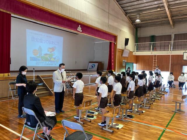 30日月曜日 4年生は子ども民生委員の委嘱式があり、認知症サポーターの講習会も受講しました。