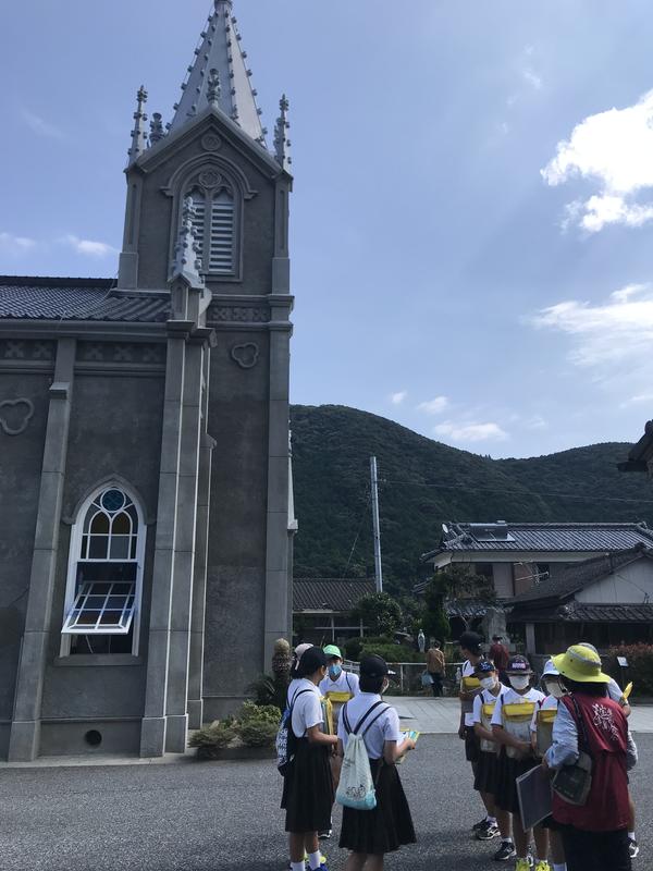 6年生が総合的な学習の時間で取り組んでいる「世界遺産学」の現地体験学習で崎津集落の見学に出かけました。ロザリオ館の館長様はじめ職員の皆様、現地ガイドを務めてくださった風間様、大変お世話になりました。秋晴れの好天にも恵まれ、素晴らしい現地学習ができました。11月の修学旅行でも長崎で関連した学びができればと思います。帰りにお弁当を食べた道の駅「かかしの里」でも大変お世話になりました。ありがとうございました。