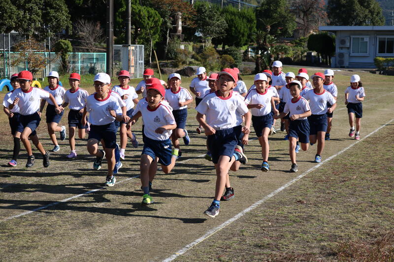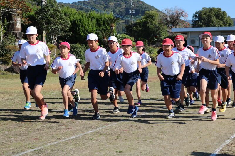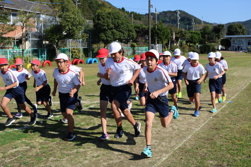 11月20日(土)雲ひとつない晴天の下、令和3年度校内持久走大会を実施しました。低・中・高学年それぞれの部に全校児童73人が参加し、全員が完走しました。長い距離を一定のペースを保ちながら走り抜くのは辛いですが、自分の新記録を目指して練習段階から頑張り、この日を迎えました。たくさんの保護者の皆様、地域の皆様の温かい応援を受けて、気持ちよく走り抜くことができたようです。PTA役員の皆様、駐在所の奥村さん、青パトの渡邊さん、福富さんはじめ、たくさんの方のご協力のおかげで、大きな怪我もなく無事に大会を実施することができました。深く感謝申し上げます。持久走大会への取り組みをとおして、目標に向かって持久力と忍耐力を磨き、さらに成長した栖本っ子たちの今後にもどうぞご期待ください。