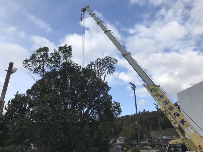 安全面で課題となっていた体育館前の楠の木1本を、天草市にお願いして伐採していただきました。長い間子供たちを見守ってくれた楠の木でしたので、利用できる方法がないか多くの方にご相談したところ、地元の原田製材所様のご厚意により、ボランティアで板材に加工していただくことができました。この板材は空き教室で乾燥させた後に、子供たちのアイデアを活かしながら看板作成などに活用させていただく予定です。原田製材所様はじめ関係者の皆様に深く感謝申し上げます。本当にありがとうございました。