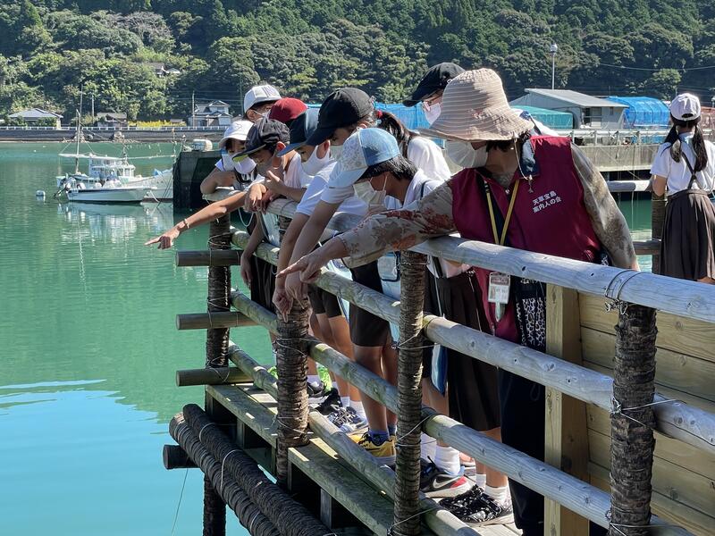 10月16日(金)の午後、5年生が総合的な学習の時間に河内川河口の干潟で環境学習を行いました。本校保護者でもある天草海部の正角さんのご指導のもと、小さな魚やカニなどの干潟の生き物を観察し、地域の豊かな自然環境について学習しました。