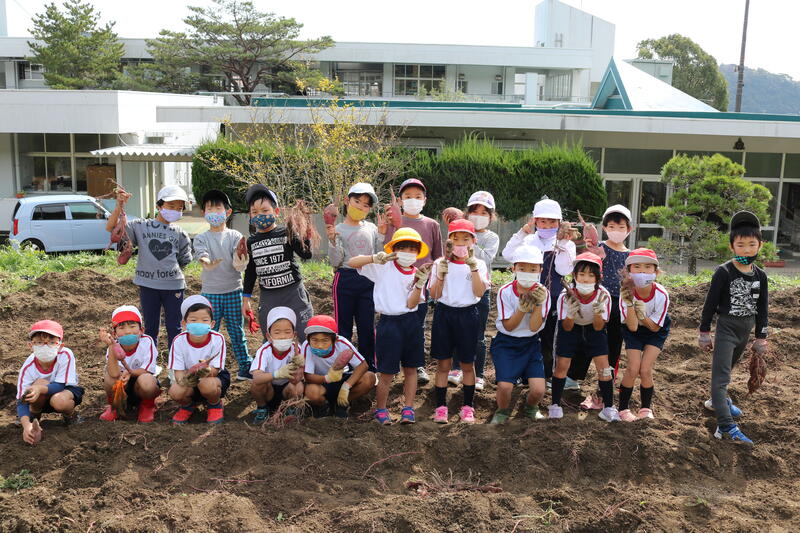 イモ植えからご協力いただいた樫原さんご夫妻と、地域学校協働活動推進員の渡邉さんのご協力のもと、1,2年生が、生活科の時間にイモ掘りを行いました。今年は葉の育ちが悪くて心配していたのですが、たくさんのサツマイモが収穫できて大喜びの子供たちです。それぞれの家庭に持ち帰って味わう他に、焼きいも大会も予定されています。楽しみですね。お世話になった皆様、ありがとうございました。