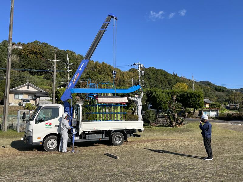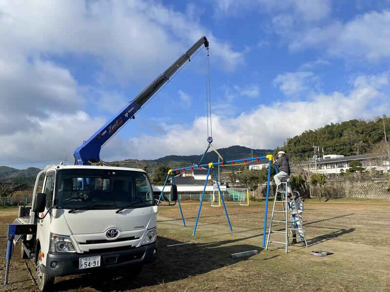 老朽化により使用できなかったジャングルジムを2年前に撤去しましたが、やっと新しいジャングルジムを設置していただくことができました。今日は土曜日ですが、来週の子供たちの顔が楽しみです。みんなで大切に使います。お世話いただいた皆さん、ありがとうございました。