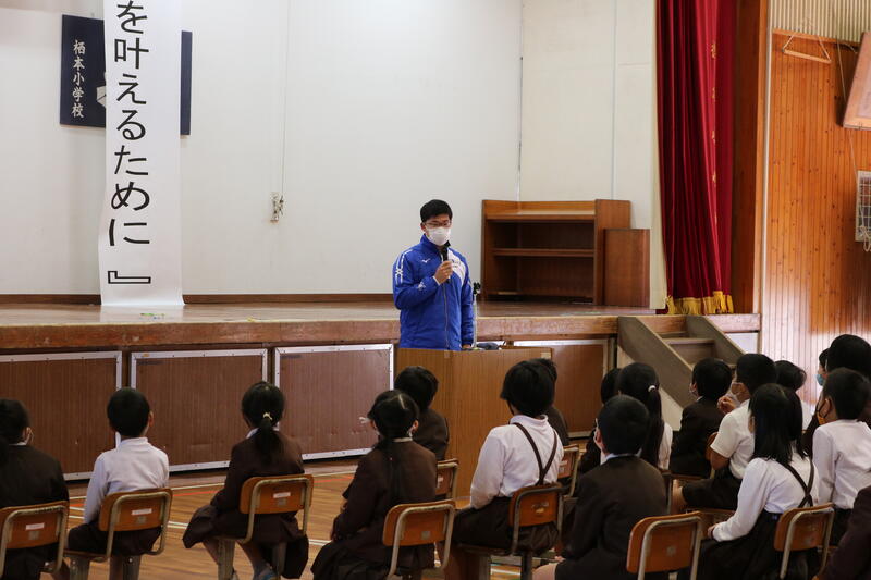 10月19日(月)の6校時に、栖本中学校代表生徒の皆さんが本校を訪れ、3年生以上の子供たちに学習文化発表会での発表演目を披露してくださいました。新型コロナの影響で小中学生の交流がなかなか難しい中、先輩方が披露してくださった栖本太鼓やマンドリン演奏、中学3年生の合唱はとても立派で美しく、子どもたちも目を輝かせて鑑賞していました。栖本中学校の皆さん、ありがとうございました。