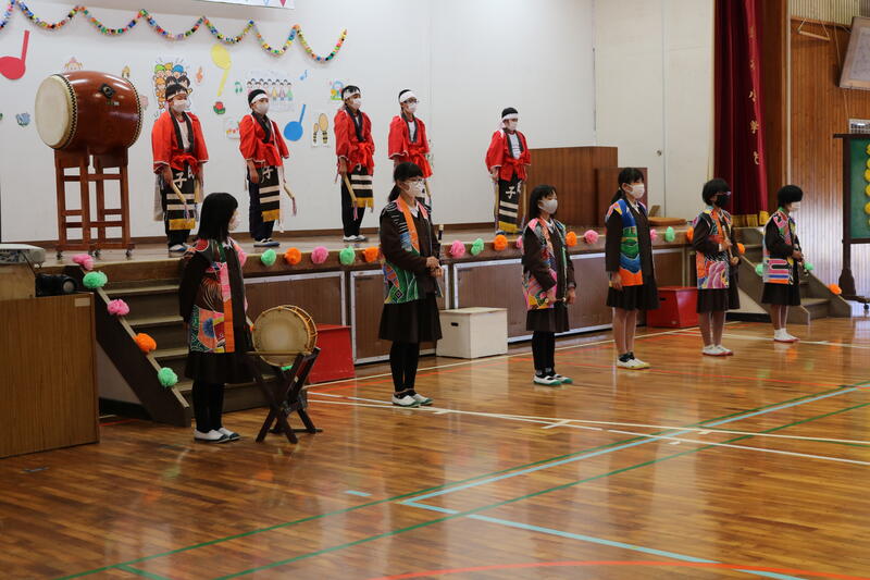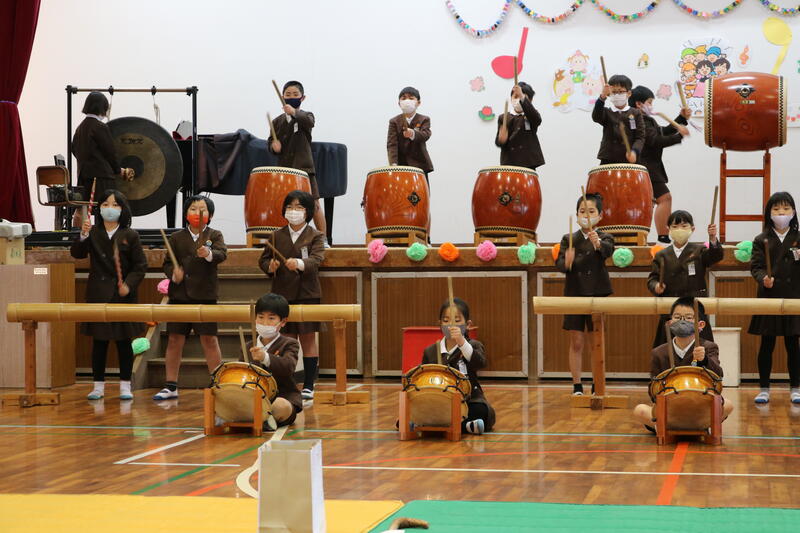 2月27日(日)学習発表会を行いました。会場の密を避けるために、今年度は低・中・高学年ごとに児童を入れ替え、保護者の方にも人数制限とプログラムに応じた体育館と多目的室(オンライン中継)の移動をお願いしました。マスクをつけたままでの発表ではありましたが、児童1人の欠席もなく、子供たちの輝く姿を保護者の皆様に見ていただくことができました。来年こそはおじいちゃんやおばあちゃん、地域の方や保育園の年長さんなど、たくさんの方々の前で、マスクをはずして思いっきり発表ができることを願っています。温かい応援とご協力をいただいた保護者の皆様、本当にありがとうございました。写真は3、4年生によるオープニングの「かっぱ太鼓」、1年生による劇「ポツンと1けん家(たぬきの糸車)」、6年生によるエンディングセレモニー「栖本太鼓」の様子です。