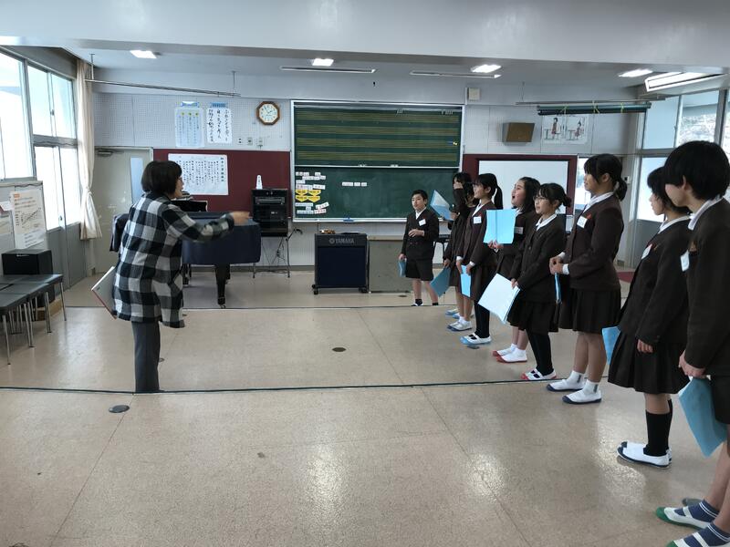昨日2月5日の5時間目、本校の音楽室に、栖本中学校から岩本先生をお招きし、卒業式に向けた合唱の特別指導をしていただきました。最初は少し緊張した面持ちだった子供たち。しかし、岩本先生の熱心なご指導が始まると、その表情は一変しました。「心を開いて、声を遠くへ届ける」ための姿勢、お腹の底から響かせる発声のコツ。一つ一つ丁寧に、そして時によいところをほめていただくうちに、子供たちの声はみるみるうちに輝きを増していきます。最初は点と点だった歌声が、練習を重ねるごとに美しい一つの「ハーモニー」へと溶け合っていく様子には、目を見張るものがありました。