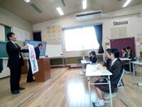 今日は天草警察署の方と交通安全協会の方を講師に招き、全校児童で交通安全教室に参加しました。協会の方からは、実際に起きた事故の場面を図を示しながら説明していただきました。子供たちはとても真剣に身近な交通安全について考えることができました。