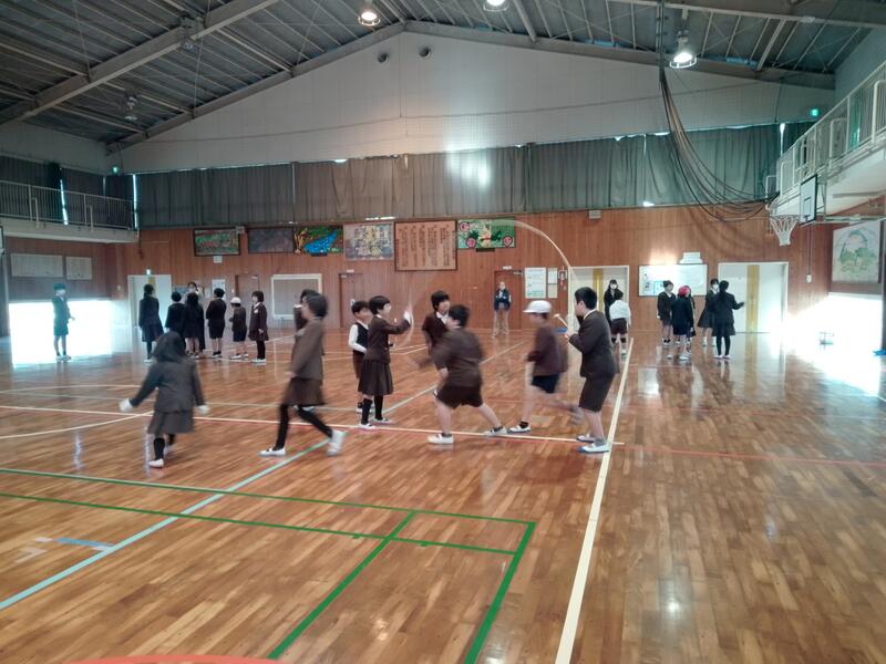 2/10(火)今朝の「朝タイム」は、「きょうだい班長縄跳び」でした。練習した後は、いよいよ3分間の「8の字跳びチャレンジ」です。体育館には「1、2、3……!」と、子供たちがリズムを合わせる元気な掛け声が響き渡りました。縄の回るテンポに合わせ、迷いなく飛び込んでいく子供たち。その軽やかな動きからは、これまでの積み重ねてきた努力と、チームの息がぴったり合っていることが伝わってきました。今日は、残念ながら最高記録はどの班も出なかったようですが、どの班も最初に比べとて速いリズムで跳べるようになりました。