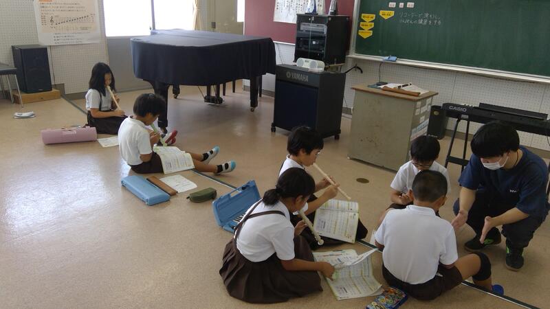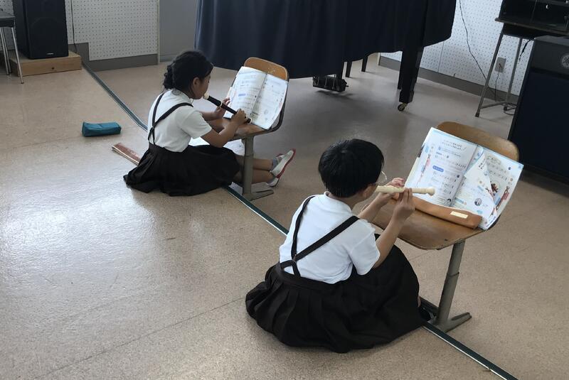 5年生は、音楽室から美しい音色を響かせていました。「リボンのおどり」をリコーダーでパートに分かれて練習し、音が重なり合う響きを味わいながら演奏していました。わずかな練習時間にもかかわらず、息の合った素晴らしい演奏を披露してくれたことに、私も大変驚かされました。子供たちの持つ可能性は無限大ですね。