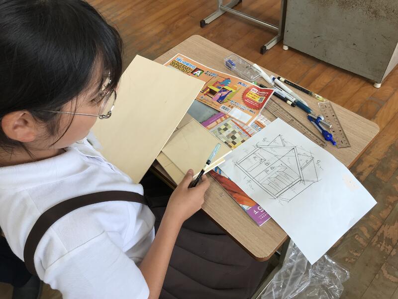 そして6年生は、図工の時間に一枚の板から小物入れづくりに取り組んでいました。中には、驚くほど緻密な設計図を書き上げている子どももいて、その発想力と丁寧さに私も大変驚きました。細部までこだわり、自分だけのオリジナル作品を作り上げようとする意気込みが感じられました。どのような素敵な小物入れが完成するのか、こちらも今から楽しみです。
