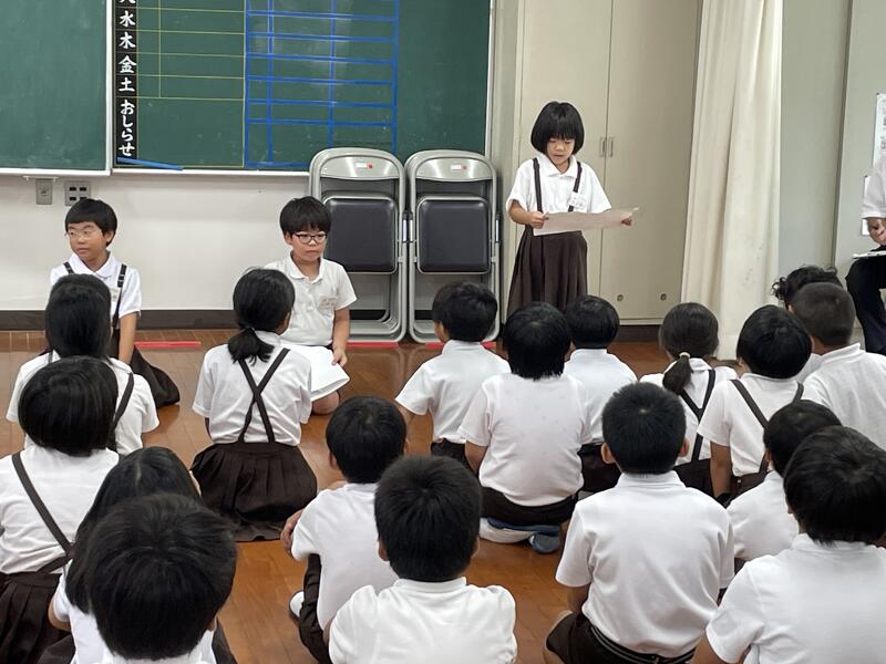 「命」は、世界にただ一つしかない、かけがえのない大切な宝物です。それは、自分の命はもちろんのこと、隣にいる友だちの命も、いつも見守ってくれる先生たちの命も、そして温かく支えてくれる家族の命も、すべて同じように尊い宝物です。この集会を一つの大きなきっかけとして、栖本っ子が自分の命をこれまで以上に大切にし、そして、周りの人々の命や気持ちを尊重し、思いやりをもって接することができる。そんな、温かい心を持った子どもたちに、今日からさらにもっと大きく成長してくれることを心から願っています。