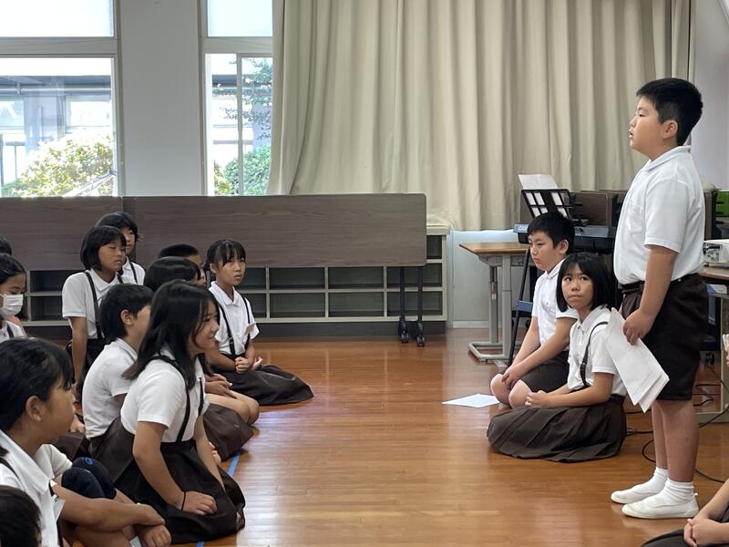 朝の時間には、子どもたちが楽しみにしているきょうだい班遊びが行われました。今日は熱中症対策をしっかり行いながら、体育館では学年を超えてドッジボールに夢中になる姿が、また運動場では鬼ごっこを楽しむ姿が見られました。短い時間ではありましたが、上級生が下級生を優しくリードし、下級生は上級生を慕いながら遊ぶ姿がたくさん見られました。こうした異学年の触れ合いが、子どもたちの社会性や思いやりの心を育む大切な 機会となっています。