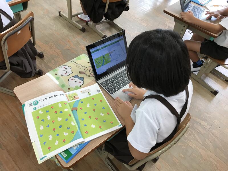 2年生は、生活科で取り組んだ町たんけんの成果を新聞にまとめていました。自分たちの足で地域を巡り、発見したことを協力しながら表現する姿は、頼もしい限りです。また、週末の出来事を教えてくれた子もいました。大切に育てているミニトマトの葉っぱが、なんと大きな幼虫に食べられてしまったそうです! 実物を見せながら熱心に話してくれる姿からは、日々の生活の中にも学びの種が溢れていることを改めて感じさせられました。