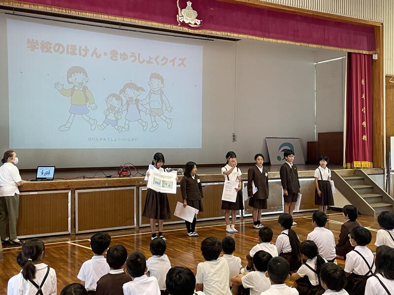 まず、児童会から今月の目標が発表されました。目標は「忘れ物をしないようにしよう」。自分で持ち物を管理する習慣は、学習の土台を築く上で非常に大切です。高学年の児童が率先して呼びかける姿は、まさに下級生の良いお手本となっており、本校が大切にする自主性と責任感の芽生えを感じさせます。また、「歯と口の健康週間」に関連する図画・ポスター、習字、標語の各コンクール、そして天草市のコンクールで見事に入賞を果たした児童たちの表彰を行いました。名前を呼ばれた時の誇らしげな表情、大きな拍手を送る仲間の温かい眼差し――努力が形になった喜びを皆で分かち合いました。表彰の後は、今月の歌である「ありがとうの花」を、体育館いっぱいに響かせました。また、今月の詩「かく」を全校で朗読しました。そして、児童会からは、学校生活の基本である「あいさつ運動」についての、具体的な取り組みの説明がありました。地域の方々にも元気な挨拶を届けられるよう、子どもたち自身が主体となって活動を広げてくれることを期待しています。