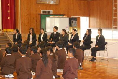 午後からは翌日の入学式の準備。少ない人数ですが、一人一人が自分の役割をしっかりと果たし、予定よりも早く終了することができました。明日は、8名の新入生が入学します。