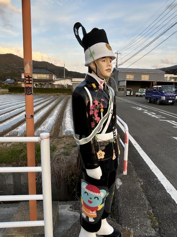 ちなみに、栖本まもる君が先週からクリスマスバージョンに衣装替えをしています。支所や地域の方の「子どもたちや地域の人たちを温かく見守りたい」という優しさが、まもる君の衣装一つ一つからひしひしと伝わってきます。こうした細やかな心遣いから、私たちは日々の生活の中で、改めて栖本地域の温かさとよさを感じています。