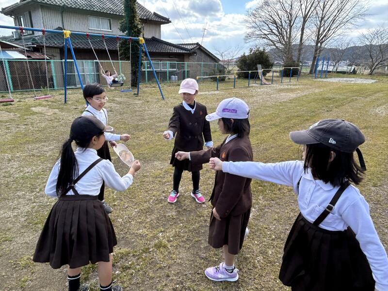 お芋が焼き上がるまでの間、1年生はボランティアの方に教えていただきながら、「竹とんぼ遊び」に挑戦しました。最初は、力の入れ方や回し方の加減が難しく、なかなか思い通りに空へ舞い上がってくれません。それでも、子供たちは決して諦めませんでした。「こうかな?」「もっと強く!」と試行錯誤を繰り返し、何度も何度もチャレンジし続けると、やがて、シュッという音とともに竹とんぼが長い時間、空中で優雅に旋回するようになり、子供たちは跳び上がって喜び、達成感を全身で表現していました。この小さな成功体験の積み重ねこそが、子供たちの「やればできる」という自信を育む大切な糧になると思います。