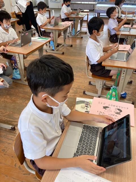 なりきり音読に一生懸命挑戦しました。タブレットを使う場面では
