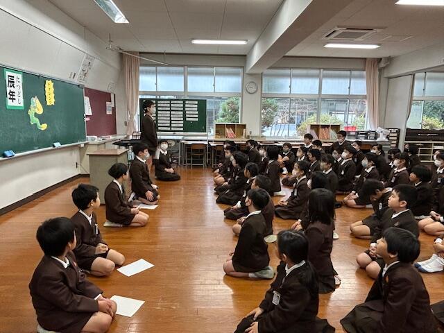 栖本小の先輩でもある天草市地域おこし協力隊の渡邉さんをお招きし、「故郷を離れて改めて感じた栖本のよさ」について講話をしていただきました。6年生は、渡邉さんたちと一緒に栖本の宝探しへ出かける来週の探究学習が今から待ち遠しい様子です。