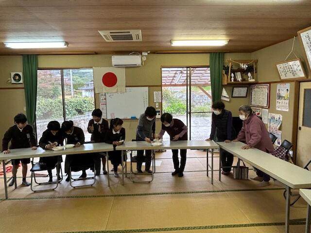 子ども民生委員として、栖本地域の民生委員さんに学ぶ会や敬老会での発表に取り組んできた4年生が、村地区公民館にてサロン交流を行いました。子供たちが考えた漢字クイズや箸使い競争を一緒に行いながら交流を深めることができ、笑顔の絶えない時間となりました。