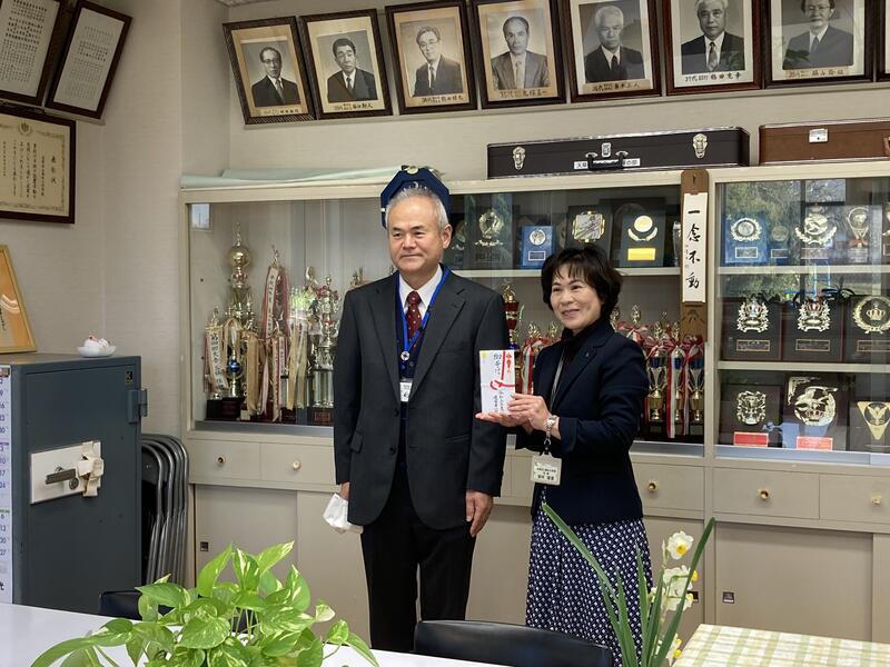 還暦同窓会代表の猪原様と事務局の山下様が代表で来校してくださり、栖本小学校時代の懐かしい昔話とともに「1月2日に同級生みんなで集まった時も、還暦の記念に母校へ恩返しをしようという話になった。」というお話も聞かせていただきました。大変ありがたい心温まるこの御寄付は、子供たちのために使わせていただきたいと思います。誠にありがとうございました。