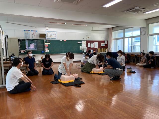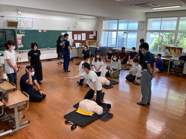 夏休み子供たちが楽しみにしているプール開放が始まります。先日は子供たちの安全な水遊びのために、中央消防署の方の指導のもと、救急救命講習会が開催され、多くの保護者が受講されました。