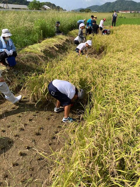 児童の感想で「楽しかったけど、稲刈りの大変さがわかりました。」という声が聞かれ、少しお米作りの大変さが分かったようです。
