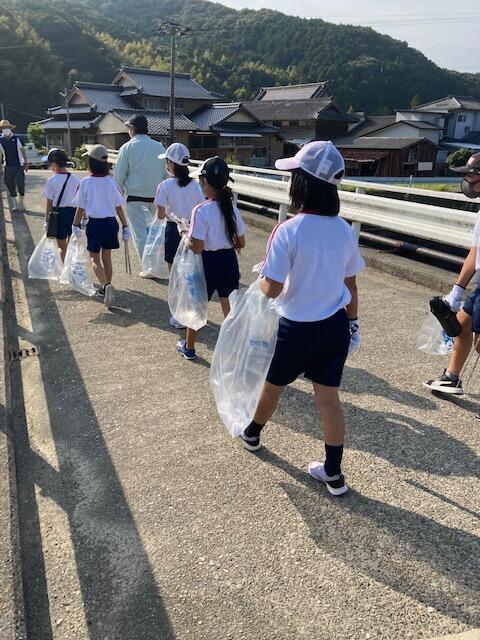 栖本地区町づくり協議会の河川清掃に多くの子供たちが参加しました。