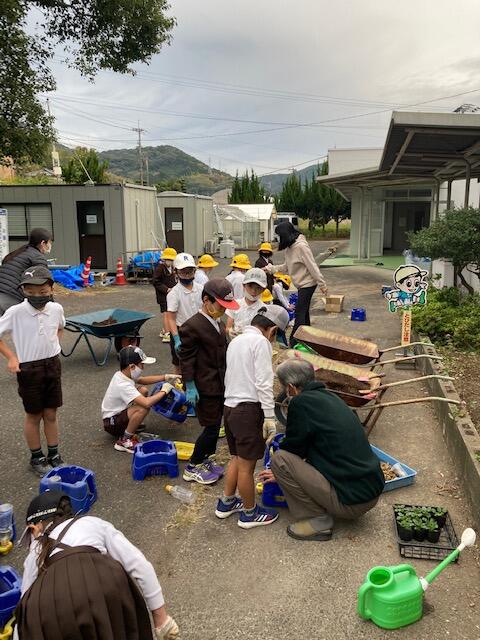 11/17 今日は1年生から4年生は卒業式を飾る一人一鉢の花の苗植えを実施しました。