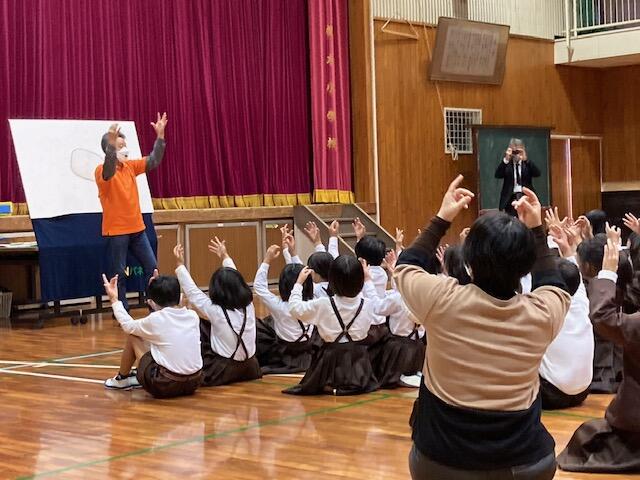 今日は大分県からパネルシアター作家の渡辺繁治さんをお招きし、全校児童とひまわりの会の皆さんで楽しいパネルシアターの公演を聞くことが出来ました。子供たちも一緒に歌いながら楽しい時間を過ごしました。
