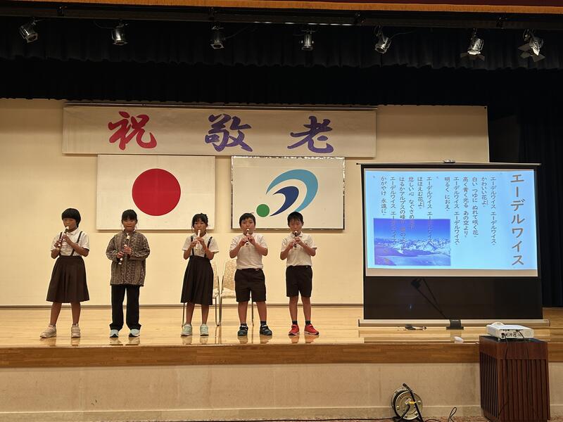 9月10日(日)栖本福祉会館にて敬老会が開催され、栖本小学校を代表して、今年度「子ども民生委員」になった4年生がステージ発表を行いました。